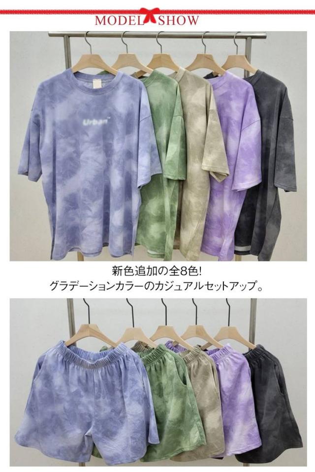 | 新色追加の全8色!グラデーションカラーのカジュアルセットアップ。 ゆったりとしたシルエットで、動きやすさを確保。 通気性の良い薄手の素材を使用しており、夏の暑い日にも快適に過ごせます。 スポーツウェアとしても、カジュアルな外出着としても活躍するアイテムです。 | |