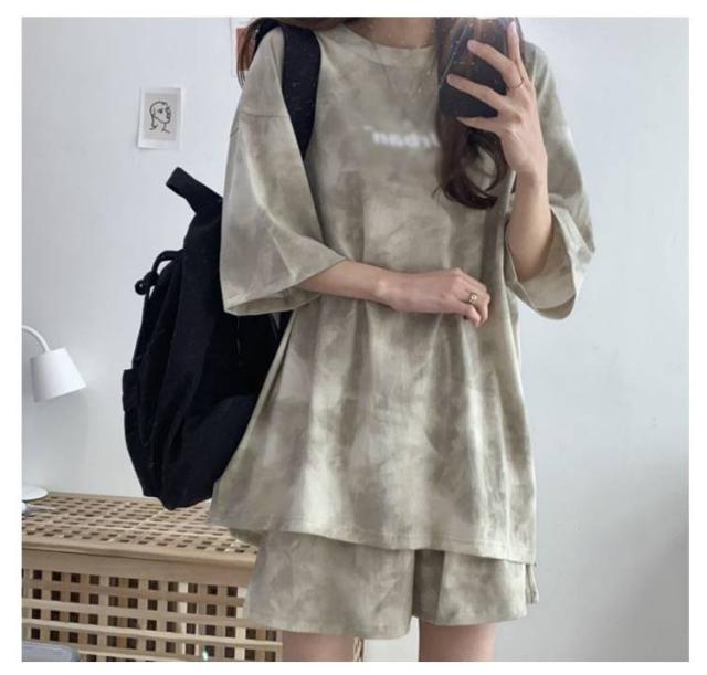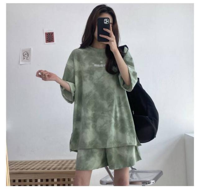 大きサイズ 夏用 スポーツウエア タイダイ タイダイ 半袖tシャツ スウェット ショートパンツ 上下セット 薄手 ルームウエア 部屋着 ゆったり グラデーション カジュアルセット スポーツ カジュアル