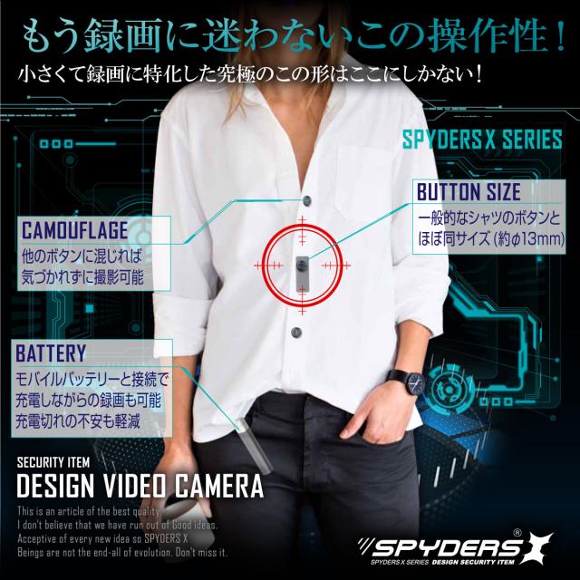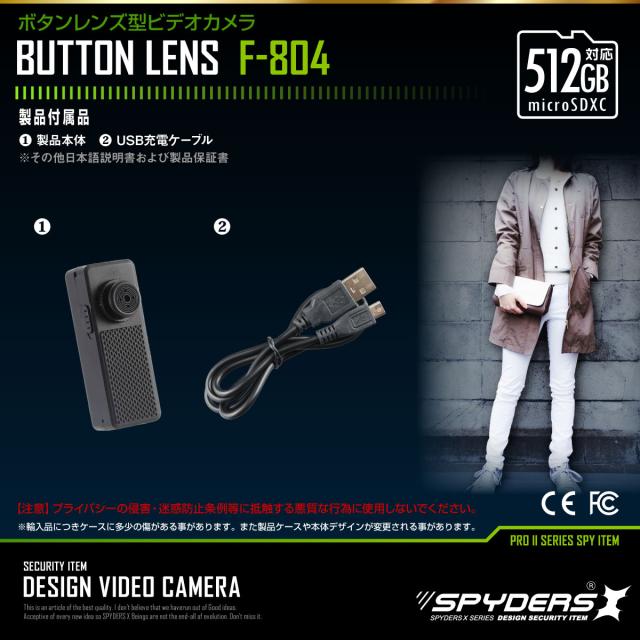 スパイダーズX 小型カメラ ボタン型カメラ 防犯カメラ 1080P ハンズフリー Wi-Fi スマホ 512GB対応 スパイカメラ F-804