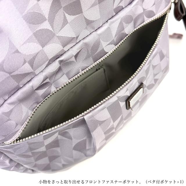 前ポケットのメタルファスナーと揺れるチャームがエレガント。