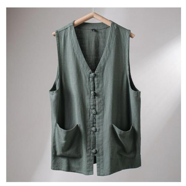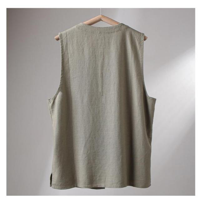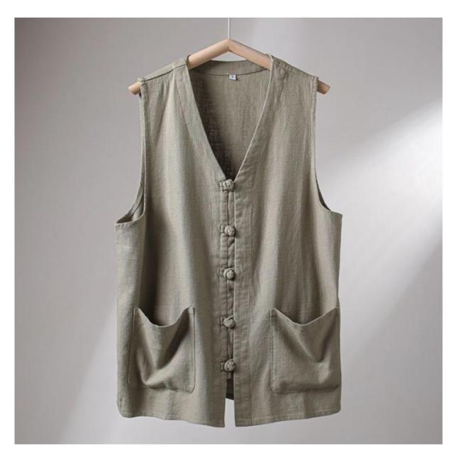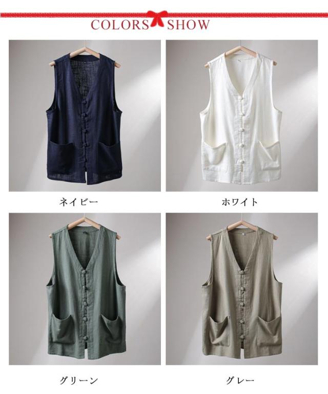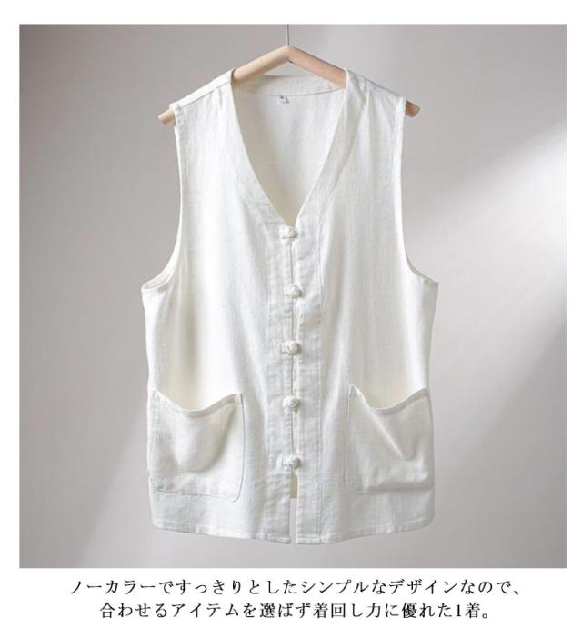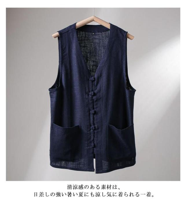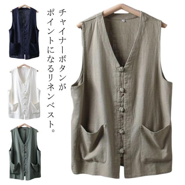 ベスト リネンベスト リネン 涼しい ナチュラル 大人 ポケット付き チャイナーボタン Vネック 麻 前開きベスト 春夏 羽織り 清涼感 ジレ おしゃれ リネンベスト 大きいサイズ レイヤード