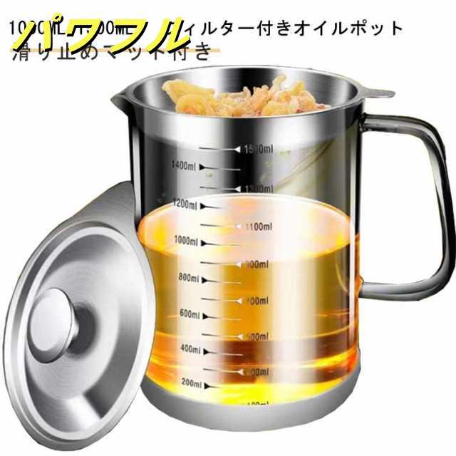 油こし器 1000ml 1500ml オイルポット ステンレス 耐熱ガラス 透明ガラス 大容量 フタ付き フィルター付き レストラン向け 残留物をろ過 油ろ過器 蓋つき 滑り止め 家庭用 計量カップ 油処理用品 シンプル 調理油 持ち手 キッチン用品 業務用 送料無料