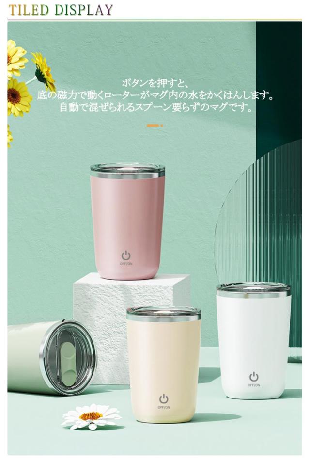 自動攪拌マグカップ ステンレス 自動ミキサーカップ ステンレス お茶 350ml 自動ミキサーカップ 自動磁気撹拌カップ 自動かきまぜ usb 充電式 電気ミキシングマグ 撹拌カップ フタ付き 紅茶 飲料 マグボトル オフィス キッチン 家族 旅行 携帯便利