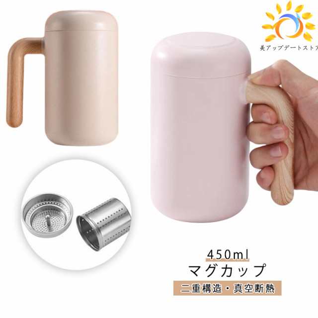マグカップ 蓋付き タンブラー 保温 保冷 真空断熱 450ml 茶こし付き セラミック ステンレス 二重構造 大容量 お洒落 家庭 オフィス コーヒーカップ 持ち運び 漏れ防止 直飲み プレゼント 送料無料