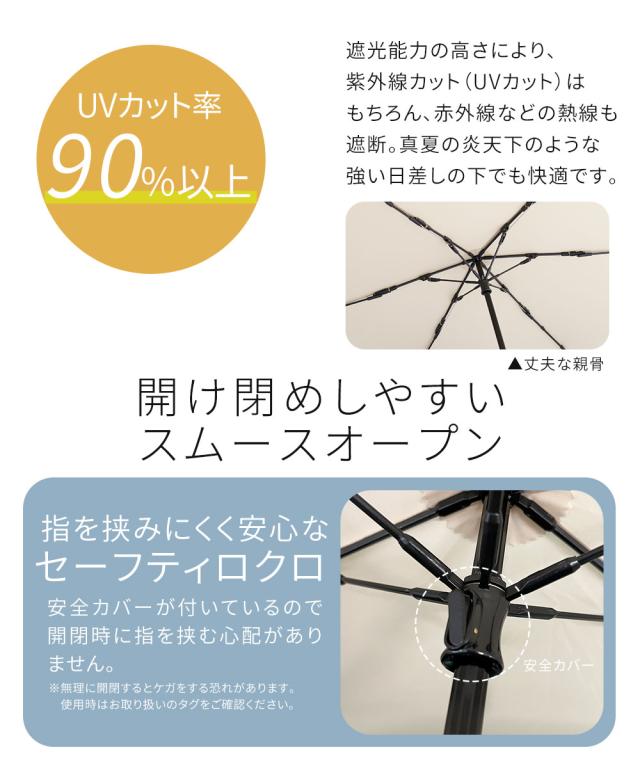UVカット機能付きで、晴れの日も紫外線対策として安心して使える晴雨兼用タイプです。
