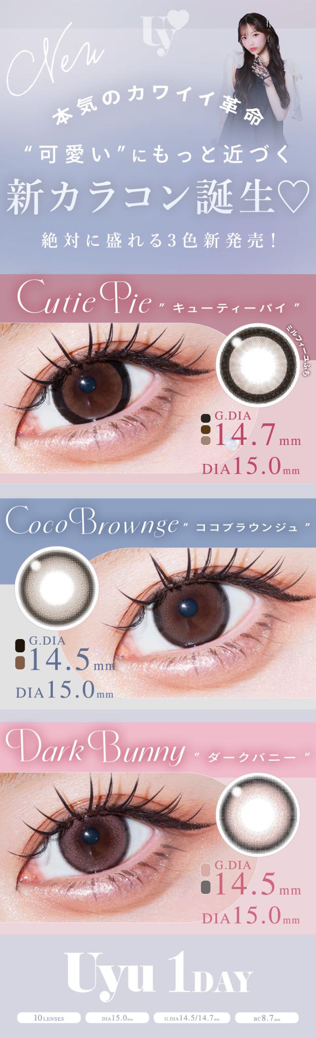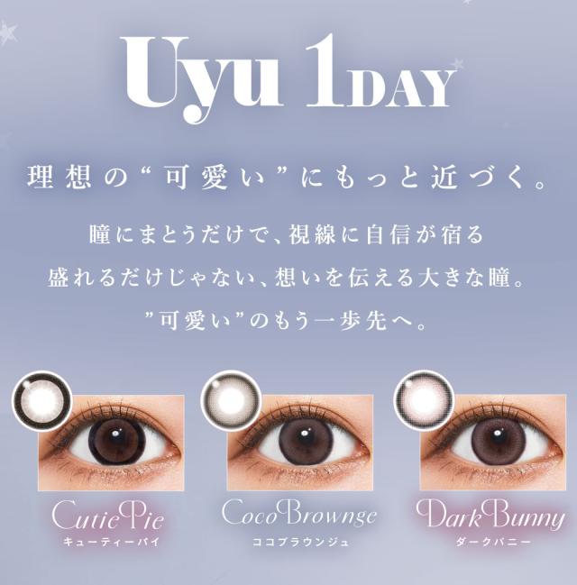 5/19新発売 ウユ ワンデー (1箱10枚) カラコン Uyu 1day 度あり 度入り 度なし あやちゃん ピンキー 送料無料 キューティーパイ ココブラウンジュ ダークバニー DIA 15.0mm フチあり