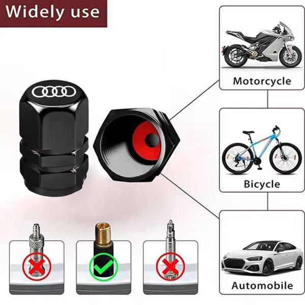 アルミニウム合金タイヤバルブキャップ,アウディa1,a2,a3,a4,a5,a6,a7,a8,q1,q2,q3,q4,q5,q6,q7,q8、tt、rs3、s5,4個
