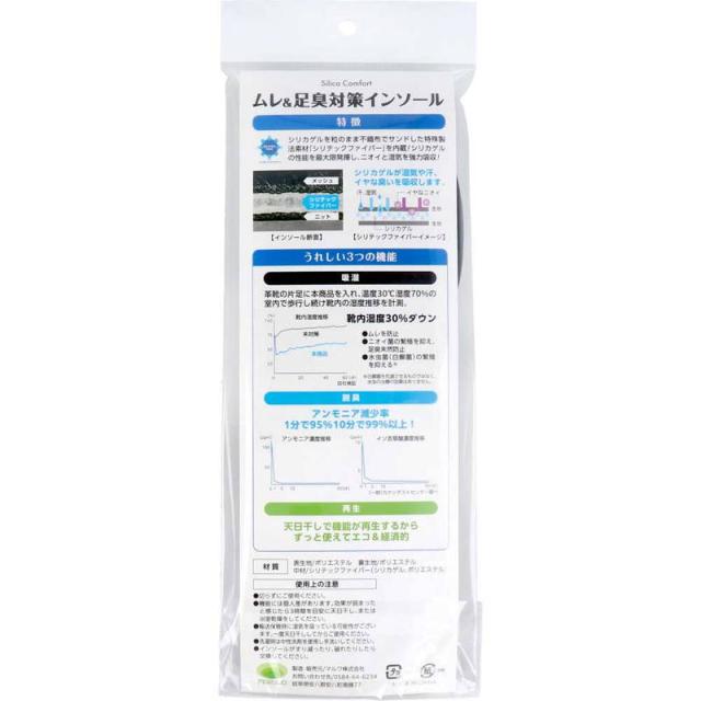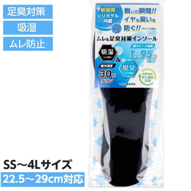 インソール 靴の中敷き 消臭剤 足のにおい対策 臭い消し Silica Comfort ムレ&足臭対策インソール ブラック SS〜4L【メール便 送料無料】
