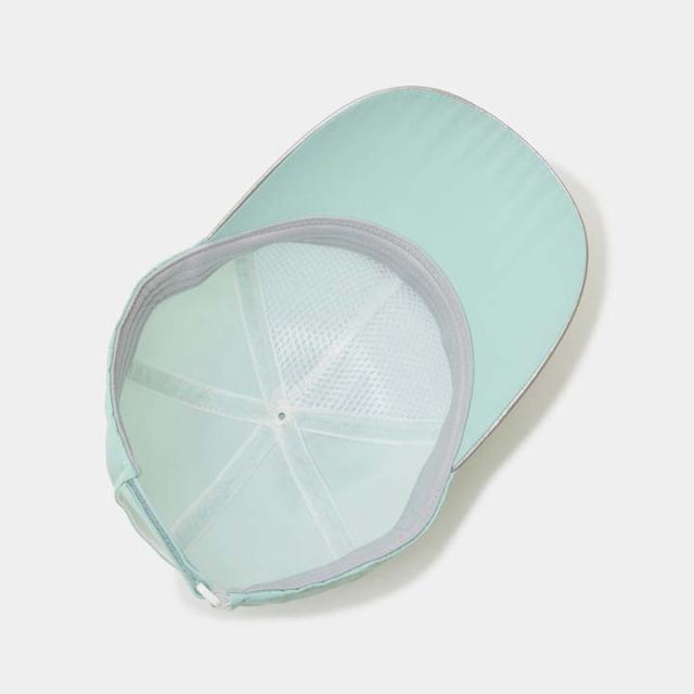 フロントにシルバーのロゴ刺繍とパンチングを施したスポーティーなキャップ。前パネルには柔らかい芯を採用し、長時間着用しても疲れにくい仕様に仕上げています。バックはベルクロ仕様となっているので誰でも簡単に微調節が可能な快適な被り心地が得られます。