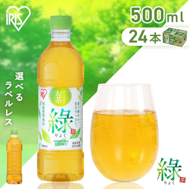 ★クーポンあり★ ラベルレス登場!お茶 緑茶 ペットボトル 500ml 24本 りょく 国産 茶葉 100%使用 まとめ買い ケース 箱 旨み すっきり ほどよい 甘み 飲みやすい 食事 低温密閉抽出 香り華やか 朝 スッキリ 日本茶 アイリスオーヤマ アイリスフーズ 緑