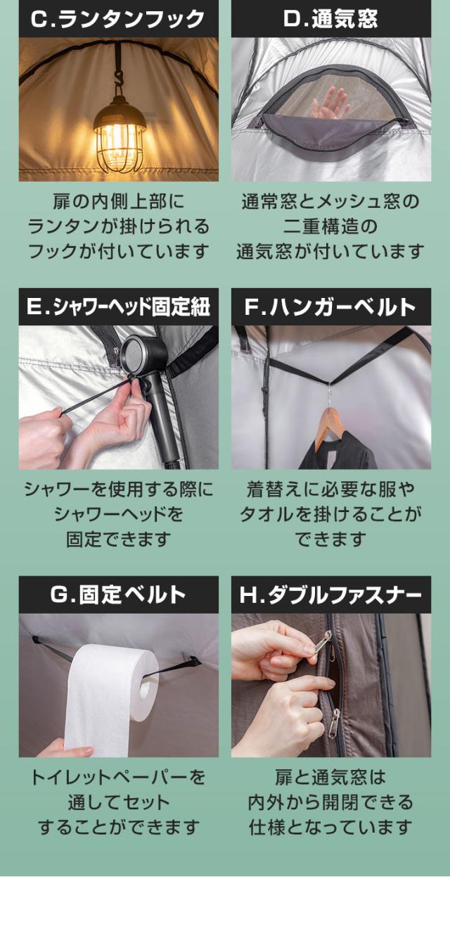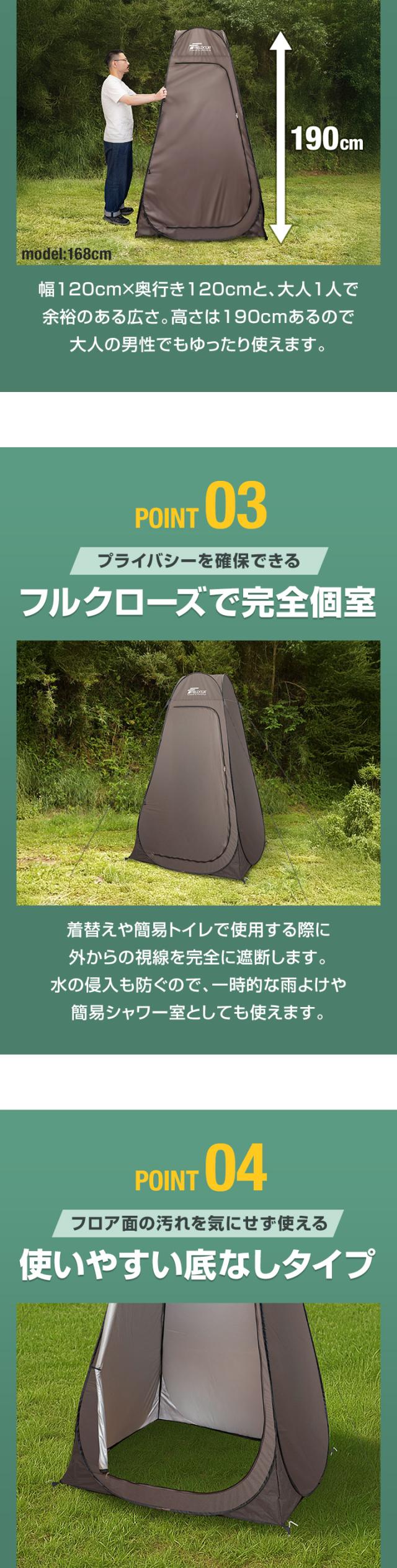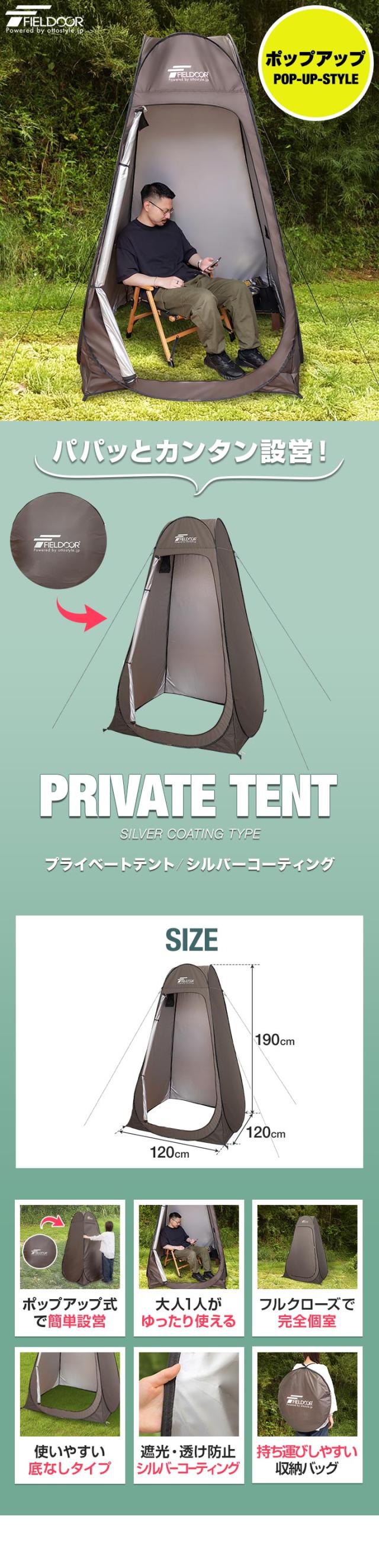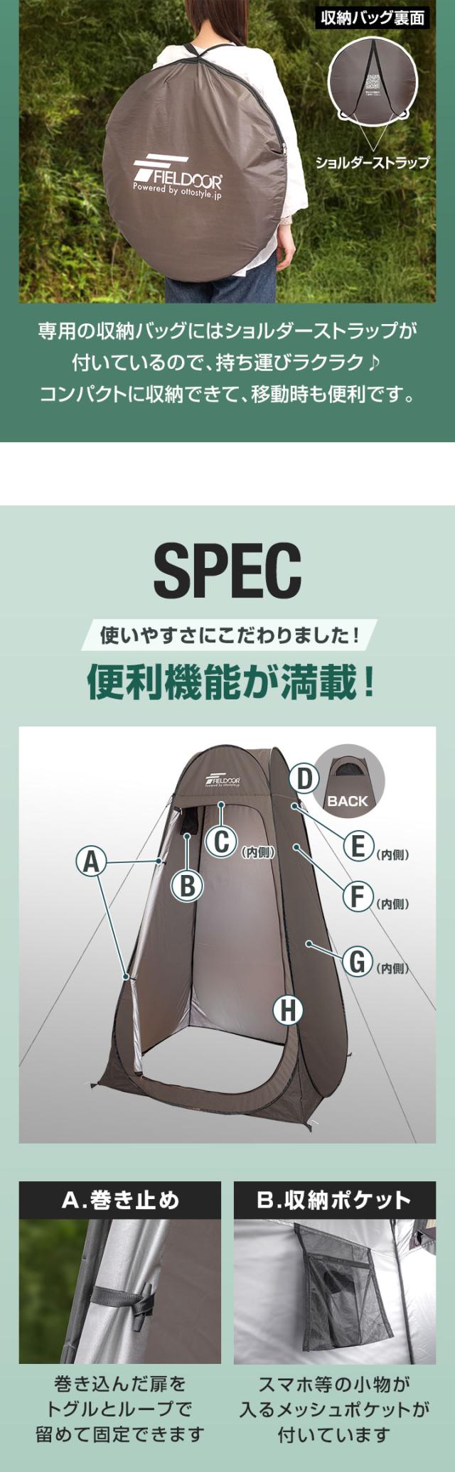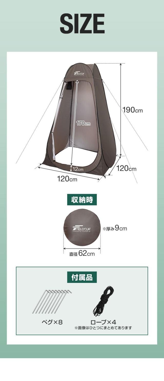 FIELDOOR 着替えテント プライバシーテント 高さ190cm ポップアップ ワンタッチ 設営簡単 簡易テント トイレテント シャワーテント プライベートテント フルクローズ アウトドア キャンプ シャワー 着替え 防災 非常用トイレ 1年保証 送料無料