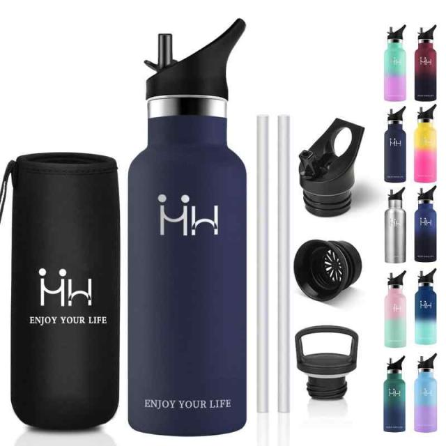 水筒 500ml 直飲みステンレスボトル 水筒 シームレス 水筒 大容量 洗いやすい 水筒 自転車 ボトル 魔法瓶コーヒー 水筒 炭酸対応 水筒 おしゃれ 真空断熱 水筒 男の子 保冷保温水筒子供 女の子 水筒 ドリンクボトル-F (ダークブルー-1, 5