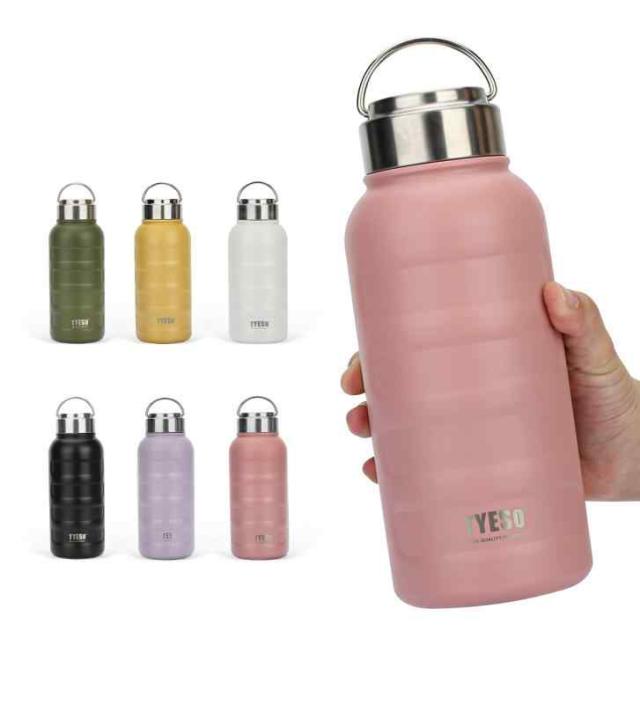 TYESO 水筒 魔法瓶 マグボトル 真空 断熱 スポーツボトル 直飲み ステンレス 2重構造 広口 ハンドル付 大人 子供 0.75 / 1リットル (750ml, ピンク)