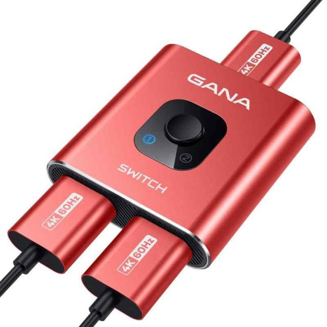HDMI切替器 4K 60Hz HDMI分配器 GANA双方向 hdmiセレクター 1入力2出力/2入力1出力 手動 切り替え器 Xbox PS5/4/3 DVDプレーヤーFire Stick適用 (レッド)