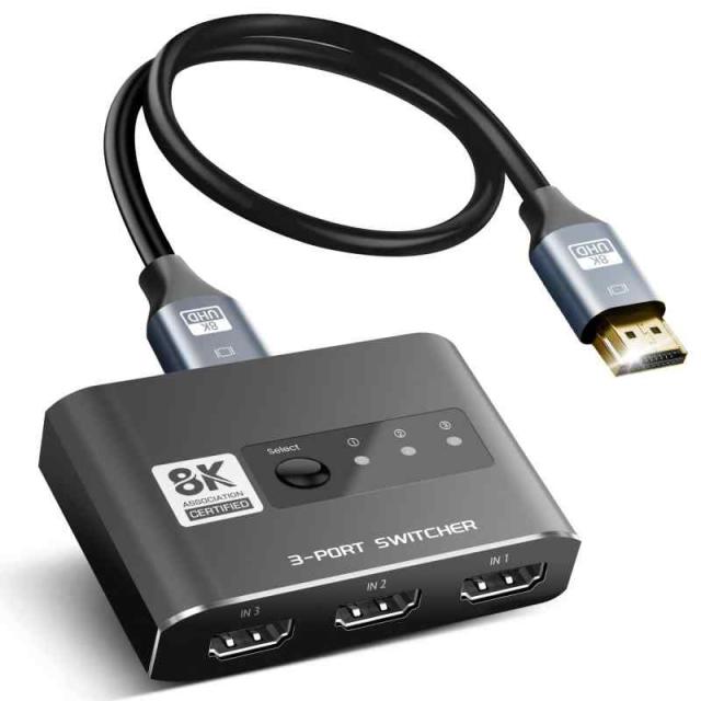 avedio links HDMI 切替器 アルミニウム合金製 セレクター3入力1出力 (8K@60Hz 3入力1出力, シルバーグレー)