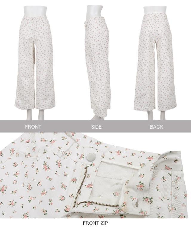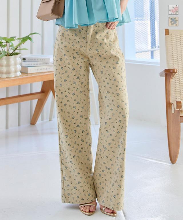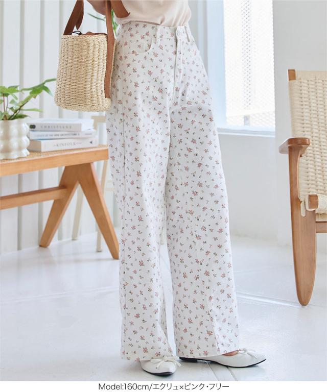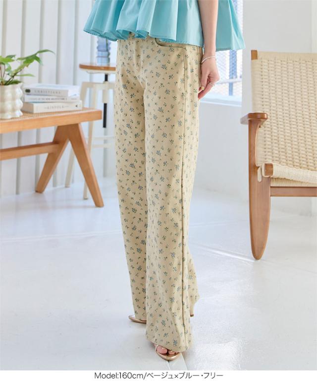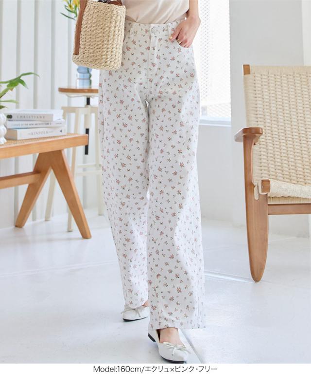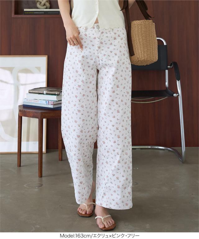 フラワープリントツイルパンツ M4236 入荷済 レディース 20代 30代 40代 小花柄 コットン 綿 春夏 コーデ 服装 ボトム ズボン パンツ ワイドパンツ カジュアル ベージュ ブルー オフホワイト ピンク ベイカーパンツ トラウザーズ ハイ