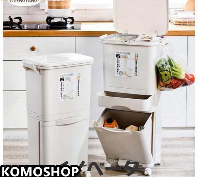 ゴミ箱 2段 3段 分別ごみ箱 大容量 ペダル式 ダストボックス 25/45/48l 縦型分類ワゴンペール フタ付き 仕切りあり キャスター付 キッチン 屋外