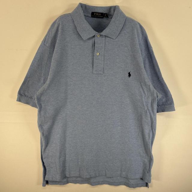 古着 ポロ・ラルフローレン POLO RALPH LAUREN 鹿の子 半袖 ポロシャツ ワンポイント ロゴ 刺繍 大きいサイズ 2ボタン LT 水色系