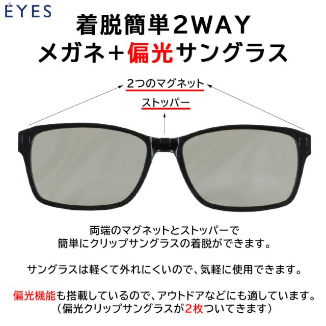 マグネット式クリップ サングラス 偏光レンズ2枚付き