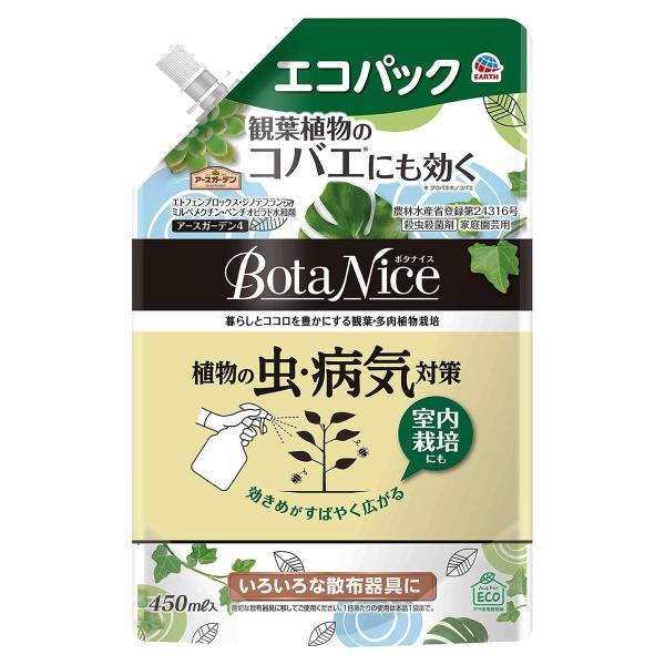 殺虫殺菌剤 BotaNice 植物の虫・病気対策 エコパック 450ml アース製薬 アースガーデン 殺虫剤 毛虫 殺虫剤 殺菌剤 うどんこ病 植物 害虫 駆除 植物 病気 対策