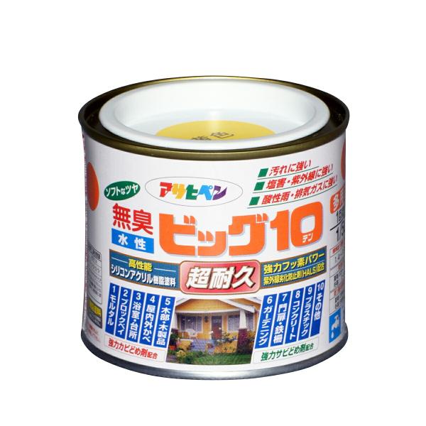 塗料 水性ビッグ10 多用途 1/5L 黄色 アサヒペン 水性塗料 ペンキ 水性 水性ペンキ 錆止め塗料 超耐久 防カビ 防さび 無臭 多用途 劣化防止