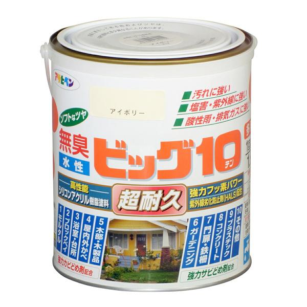 塗料 水性ビッグ10 多用途 1.6L アイボリー アサヒペン 水性塗料 ペンキ 水性 水性ペンキ 錆止め塗料 超耐久 防カビ 防さび 無臭 多用途 劣化防止