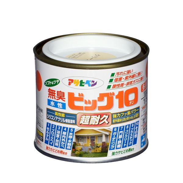 塗料 水性ビッグ10 多用途 1/5L クリーム色 アサヒペン 水性塗料 ペンキ 水性 水性ペンキ 錆止め塗料 超耐久 防カビ 防さび 無臭 多用途 劣化防止