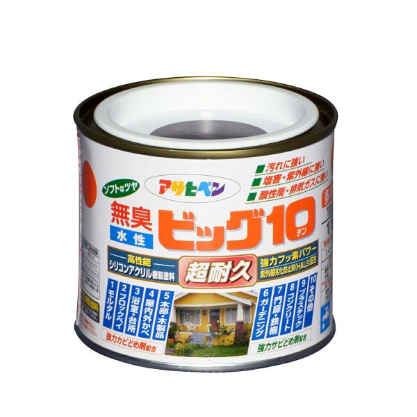 塗料 水性ビッグ10 多用途 1/5L チョコレート色 アサヒペン 水性塗料 ペンキ 水性 水性ペンキ 錆止め塗料 超耐久 防カビ 防さび 無臭 多用途 劣化防止