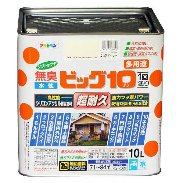 塗料 水性ビッグ10 多用途 10L アイボリー アサヒペン 水性塗料 ペンキ 水性 水性ペンキ 錆止め塗料 超耐久 防カビ 防さび 無臭 多用途 劣化防止
