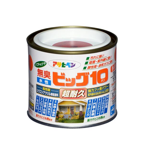 塗料 水性ビッグ10 多用途 1/5L 赤 アサヒペン 水性塗料 ペンキ 水性 水性ペンキ 錆止め塗料 超耐久 防カビ 防さび 無臭 多用途 劣化防止