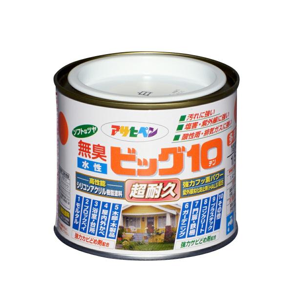 塗料 水性ビッグ10 多用途 1/5L 白 アサヒペン 水性塗料 ペンキ 水性 水性ペンキ 錆止め塗料 超耐久 防カビ 防さび 無臭 多用途 劣化防止