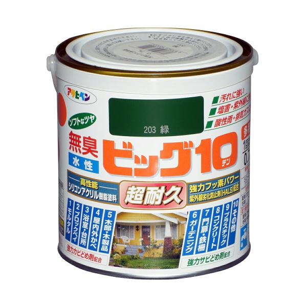 塗料 水性ビッグ10 多用途 0.7L 緑 アサヒペン 水性塗料 ペンキ 水性 水性ペンキ 錆止め塗料 超耐久 防カビ 防さび 無臭 多用途 劣化防止