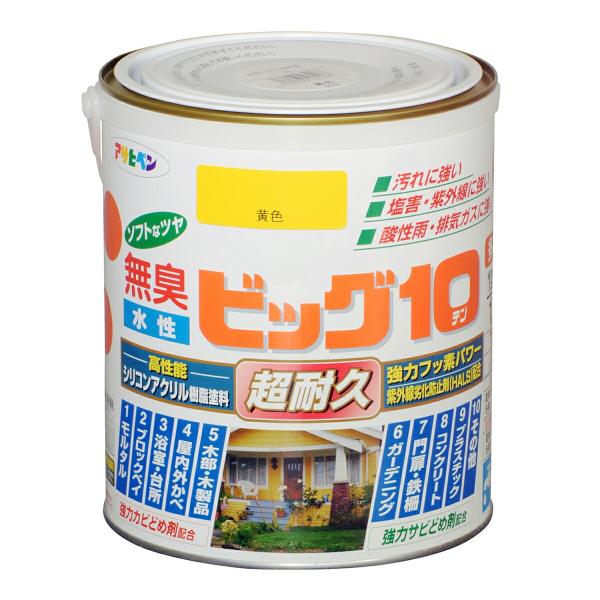 塗料 水性ビッグ10 多用途 1.6L 黄色 アサヒペン 水性塗料 ペンキ 水性 水性ペンキ 錆止め塗料 超耐久 防カビ 防さび 無臭 多用途 劣化防止