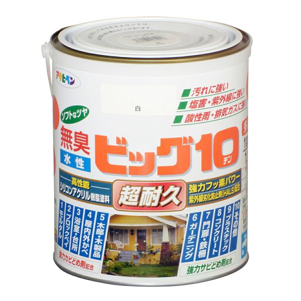 塗料 水性ビッグ10 多用途 1.6L 白 アサヒペン 水性塗料 ペンキ 水性 水性ペンキ 錆止め塗料 超耐久 防カビ 防さび 無臭 多用途 劣化防止