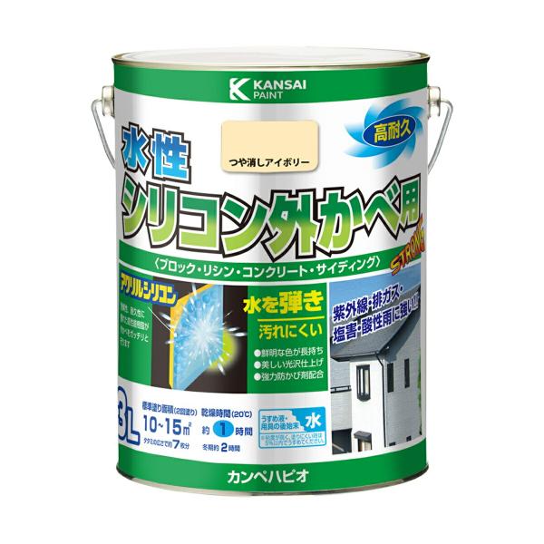塗料 水性シリコン外かべ用 3L つや消しアイボリー カンペハピオ ペンキ 水性 水性塗料 水性ペンキ 外壁塗料 外壁塗装 外壁 コンクリート塗料 高耐久 防カビ