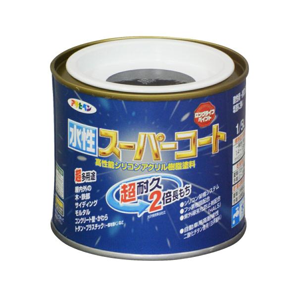 塗料 水性スーパーコート 1/5L 黒 アサヒペン 水性塗料 ペンキ 水性 水性ペンキ 錆止め塗料 錆止め 屋根塗料 コンクリート塗料 多用途