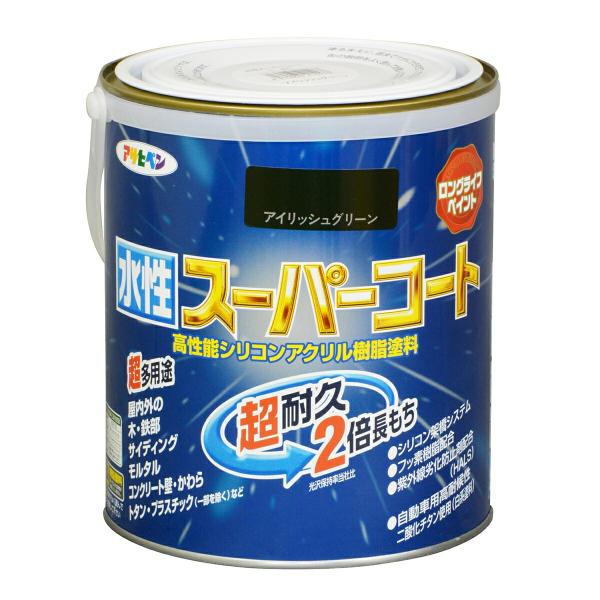 塗料 水性スーパーコート 1.6L アイリッシュグリーン アサヒペン 水性塗料 ペンキ 水性 水性ペンキ 錆止め塗料 錆止め 屋根塗料 コンクリート塗料 多用途