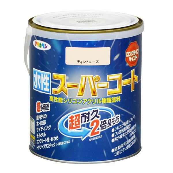 塗料 水性スーパーコート 1.6L ティントローズ アサヒペン 水性塗料 ペンキ 水性 水性ペンキ 錆止め塗料 錆止め 屋根塗料 コンクリート塗料 多用途