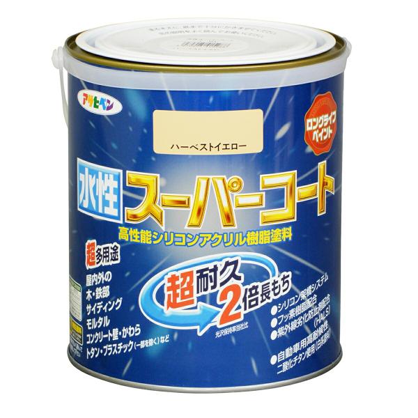 塗料 水性スーパーコート 1.6L ハーベストイエロー アサヒペン 水性塗料 ペンキ 水性 水性ペンキ 錆止め塗料 錆止め 屋根塗料 コンクリート塗料 多用途