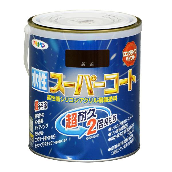 塗料 水性スーパーコート 1.6L 新茶 アサヒペン 水性塗料 ペンキ 水性 水性ペンキ 錆止め塗料 錆止め 屋根塗料 コンクリート塗料 多用途