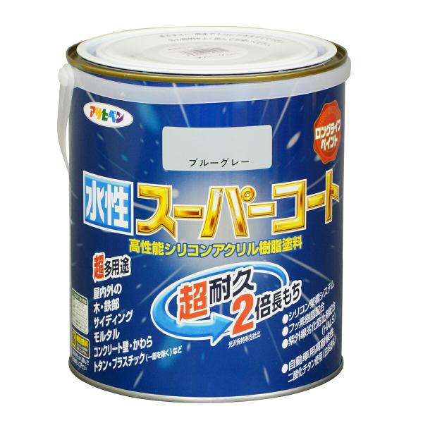 塗料 水性スーパーコート 1.6L ブルーグレー アサヒペン 水性塗料 ペンキ 水性 水性ペンキ 錆止め塗料 錆止め 屋根塗料 コンクリート塗料 多用途