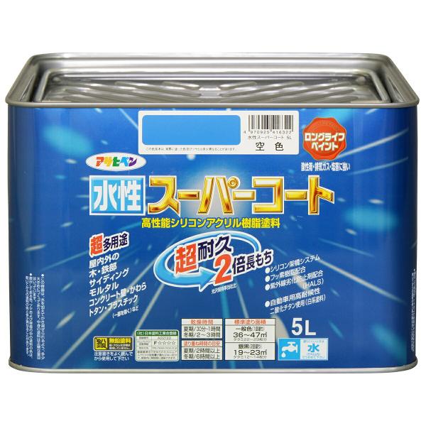 塗料 水性スーパーコート 5L 空色 アサヒペン 水性塗料 ペンキ 水性 水性ペンキ 錆止め塗料 錆止め 屋根塗料 コンクリート塗料 多用途