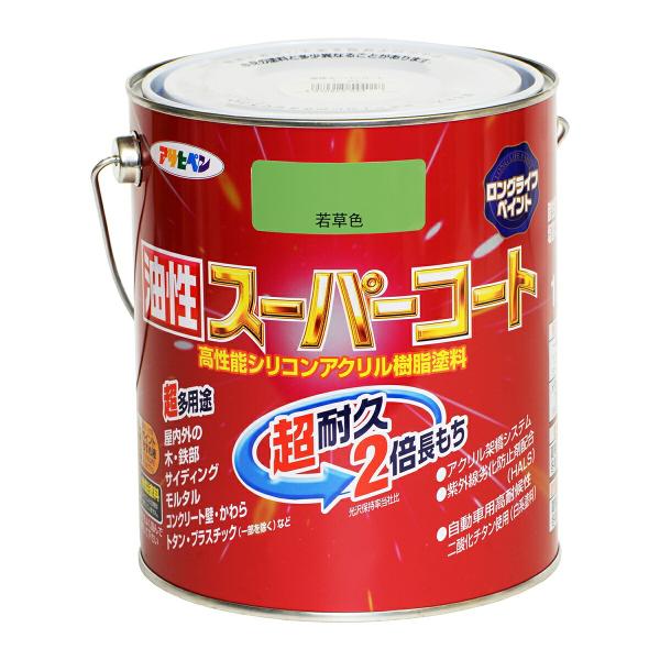 塗料 油性スーパーコート 1.6L 若草色 アサヒペン ペンキ 油性 油性塗料 錆止め塗料 錆止め 屋根塗料 トタン屋根用塗料 コンクリート塗料 多用途