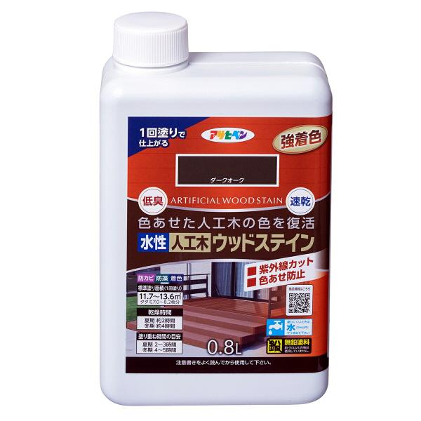 塗料 水性人工木ウッドステイン 0.8L ダークオーク アサヒペン 水性塗料 ペンキ 水性 水性ペンキ ウッドデッキ 塗料 防カビ 防藻 低臭 劣化 速乾