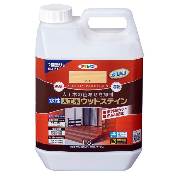 塗料 水性人工木ウッドステイン 1.8L クリヤ アサヒペン ペンキ 水性塗料 ペンキ 水性 水性ペンキ ウッドデッキ 塗料 防カビ 防藻 低臭 劣化 速乾