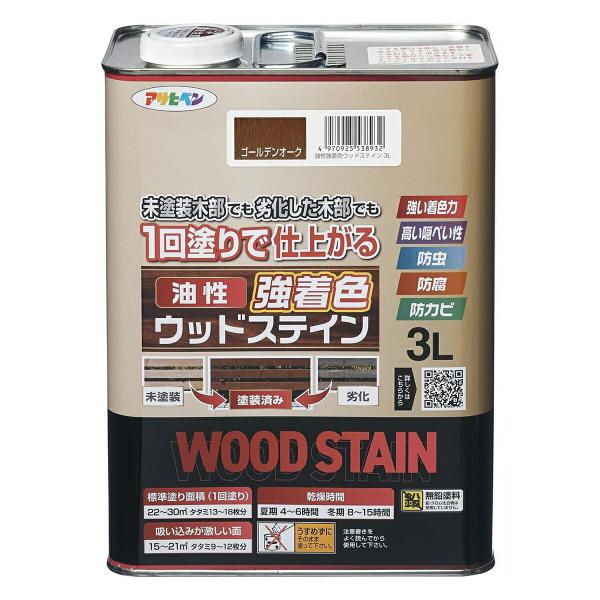 塗料 油性強着色ウッドステイン 3L ゴールデンオーク アサヒペン ペンキ 油性 油性塗料 防腐剤 木材 ウッドデッキ 塗料 油性ペンキ 防虫 防カビ