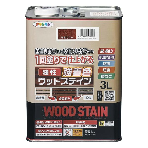 塗料 油性強着色ウッドステイン 3L マホガニー アサヒペン ペンキ 油性 油性塗料 防腐剤 木材 ウッドデッキ 塗料 油性ペンキ 防虫 防カビ