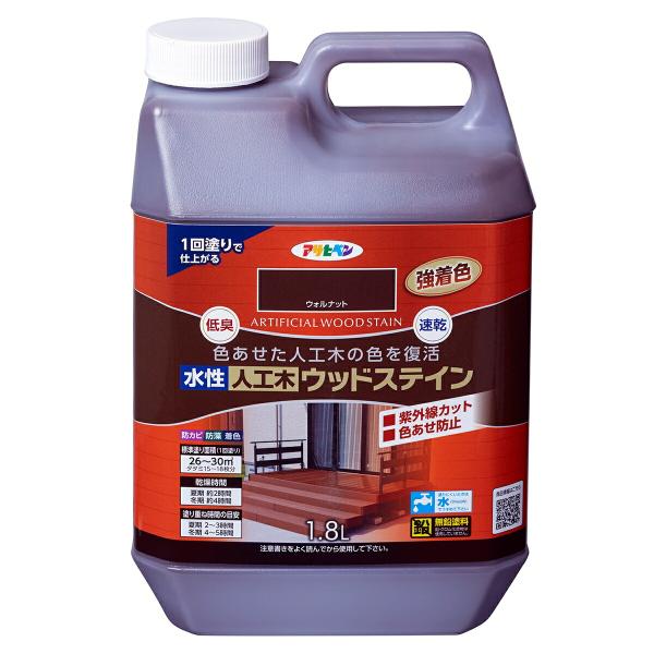 塗料 水性人工木ウッドステイン 1.8L ×6缶 ウォルナット アサヒペン 水性塗料 ペンキ 水性 水性ペンキ ウッドデッキ 塗料 防カビ 防藻 低臭 劣化 速乾