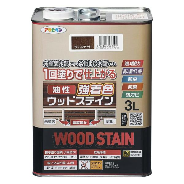 塗料 油性強着色ウッドステイン 3L ウォルナット アサヒペン ペンキ 油性 油性塗料 防腐剤 木材 ウッドデッキ 塗料 油性ペンキ 防虫 防カビ