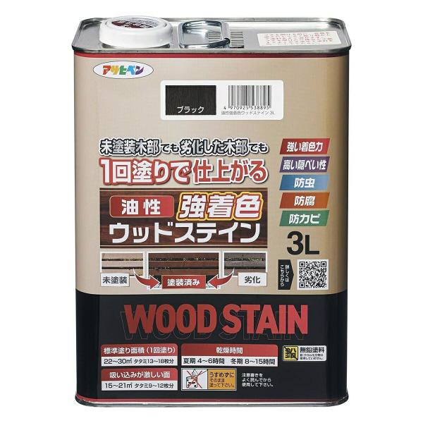 塗料 油性強着色ウッドステイン 3L ×4缶 ブラック アサヒペン ペンキ 油性 油性塗料 防腐剤 木 ウッドデッキ 塗料材 油性ペンキ 防虫 防カビ